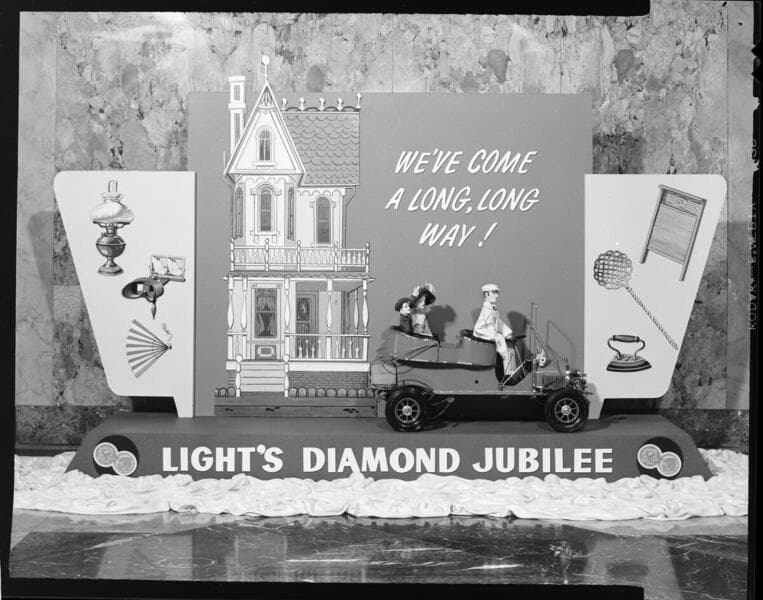 General Office display window - "We've Come a Long, Long Way - Light's Diamond Jubilee".