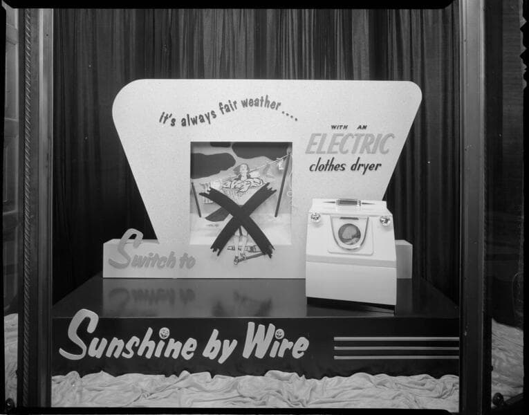 General Office display window - "Plug In the Sun With an Electric Clothes Dryer"
