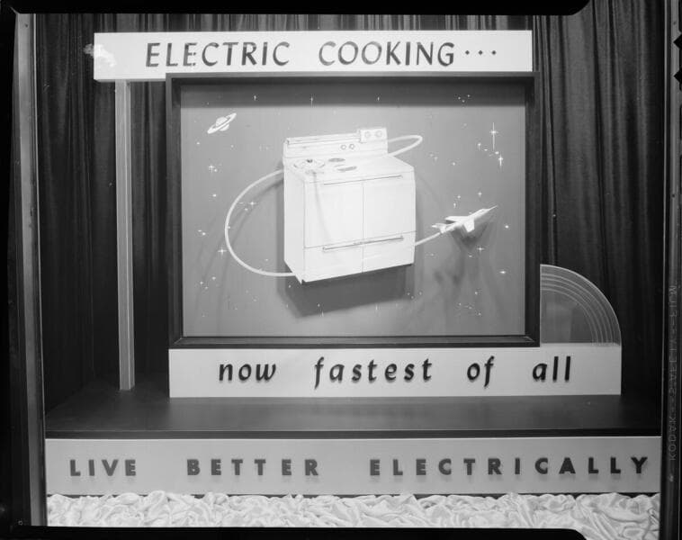 General Office display window - "Cool - Clean; and Fastest Of All! - Electric Cooking - Live Better Electrically"