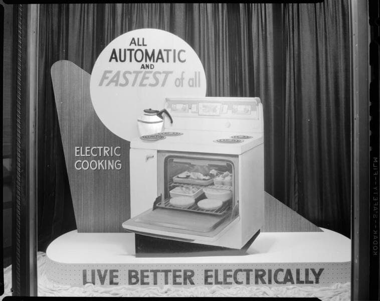 General Office display window - "Cool - Clean; and Fastest Of All! - Electric Cooking - Live Better Electrically"