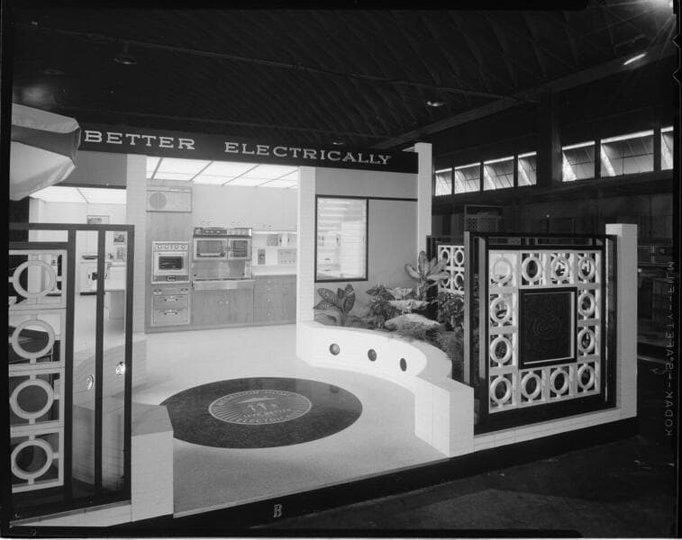 [All-electric model home open house with Edison Home Economist demonstrating kitchen features to group of ladies] [with 58 variants (35 are on 35 mm film)]