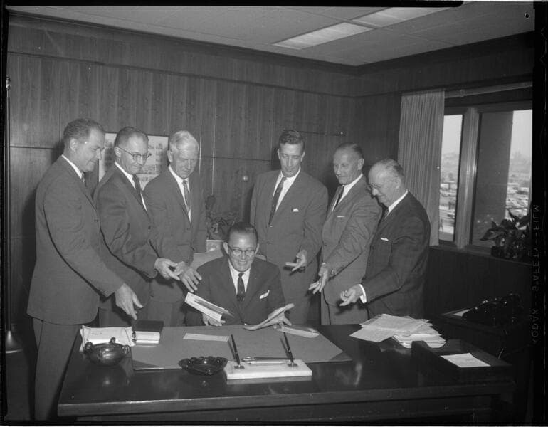Edison reps. presenting tax payments to L. A. County Tax Collector [with 5 variants