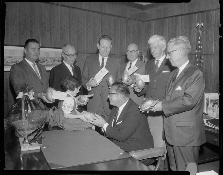 Edison reps. presenting tax payments to L. A. County Tax Collector [with 5 variants