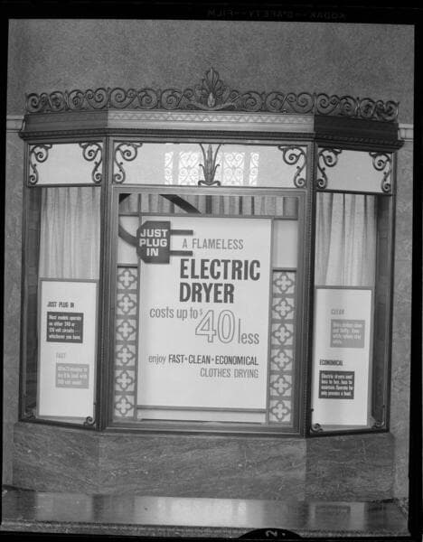 General Office display window - "Get Rid of Clothesline Drudgery - Plug In the Sun... Electrically, with an electric clothes dryer"