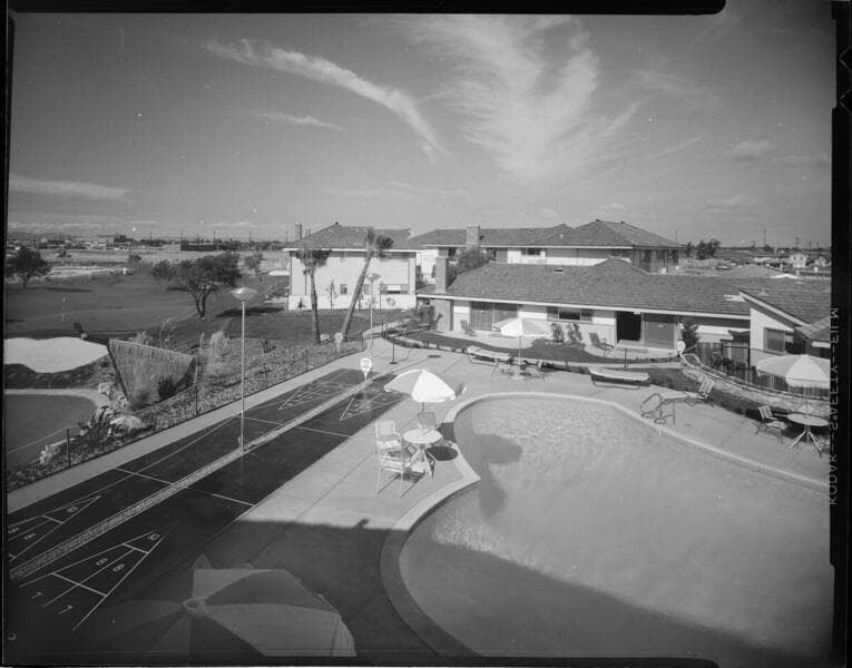 [Desert home on a golf course. Owner appears to be trumpeter, Red Nichols] [with 11 variants]