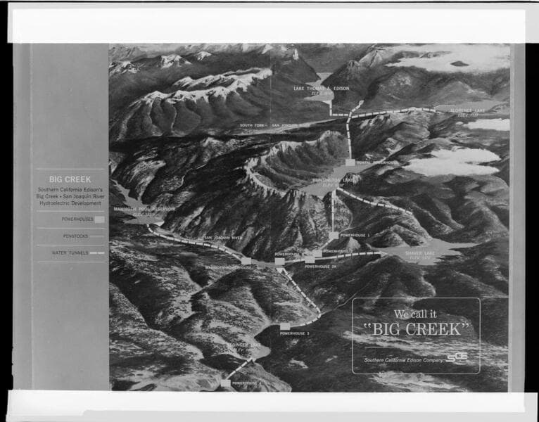 [Relief map of Big Creek area - Contours, tributaries, and hydroelectric facilities shown.]