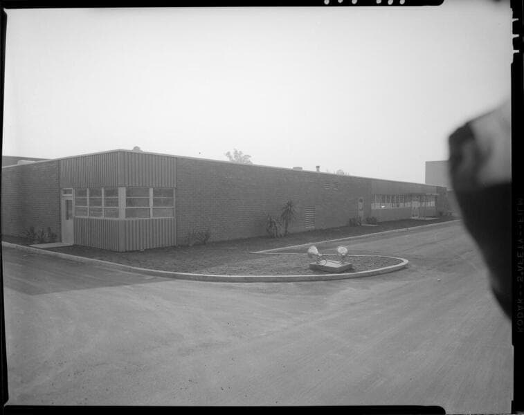 CEP General Office, Rialto - with construction site sign declaring construction of the new Calif. Electric Power Company's, General Headquarters building