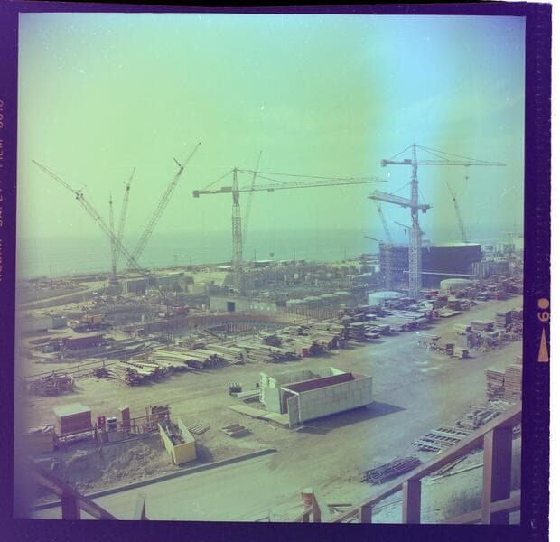 San Onofre Nuclear Generating Station - Aerial view of Unit 1 (top left), and Units 2 & 3 under construction.