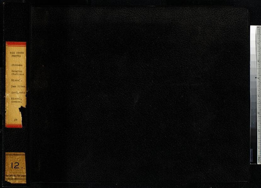 On spine of album: Streams, Gauging Stations, Dam Sites, Accidents, Miscellaneous Scenes. San Joaquin River, Blaney Meadows, Big Creek Lower Falls, Chiquito Creek, Granite Creek, Boggy Meadows, Gauge Houses, Banner and Ritter Peaks, Balloon Dome, Squaw Dome, Miller's Bridge, McClure Meadow, Sapphire Lake, Evolution Creek, Glaciers, Piute Creek, Pitman Creek Weir; Dam Sites: Mammoth Pool Reservoir, Forks Reservoir, Miller's Bridge Reservoir, Paradise Bar Reservoir, Wanda Lake, Desolation Lake, Stevenson Creek Test Dam, Shaver Lake; Stream gauging: recorders, stations, and field cabins for personnel; San Joaquin and Eastern Railroad accidents; miscellaneous Big Creek Powerhouses.