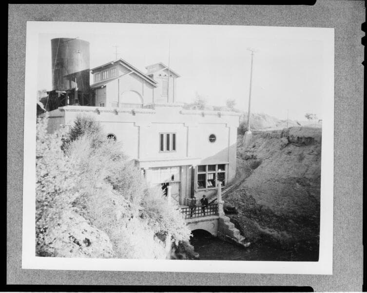 Holton Power Co. - Powerhouse #1 showing pressure regulating tank and the 50" pressure [penstock] to powerhouse #3