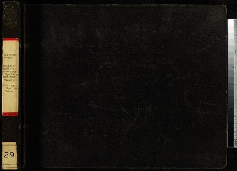 Views of Bear Dam, Mono Dam, Mono-Bear pipelines and diversions, and Huntington -Shaver diversions. Construction of Bear Creek Dam and intake structure, and Mono Creek Dam and intake structure, logging area for Mono Creek reservoir, pipeline crossing south fork of San Joaquin River, Camps 71, 72, 73, 80, 81, 82, 83, and 85; Mono-Bear siphon, backfilled siphon and pipeline, tunnels, pipeline installations, outlets of Mono and Bear Tunnels, intake of Bear Tunnel at Camp 86, Intake of Mono tunnel, Big Creek siphon, duplex valve on Huntington-Pitman-Shaver conduit and tunnel, intake for conduit at Dam 2, Warehouse, Mess hall and Hospital at Camp 73.