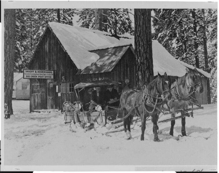 Although construction work continued through the depths of the winter of 1912-1913, the Big Creek Project seemed very isolated from the outside world. Getting the U.S. Mail from the railhead at Camp #2 to the most distant camps was a necessary, if difficult, task.