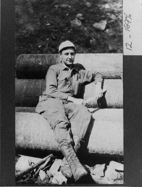 Dave Redinger sits in front of Powerhouse #1 just days before his retirement in 1947.