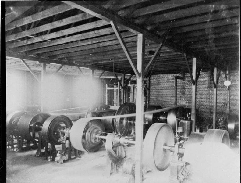 An interior view of the Los Angeles #1 Steam Plant. [as it appeared in 1902, before its conversion to a substation]