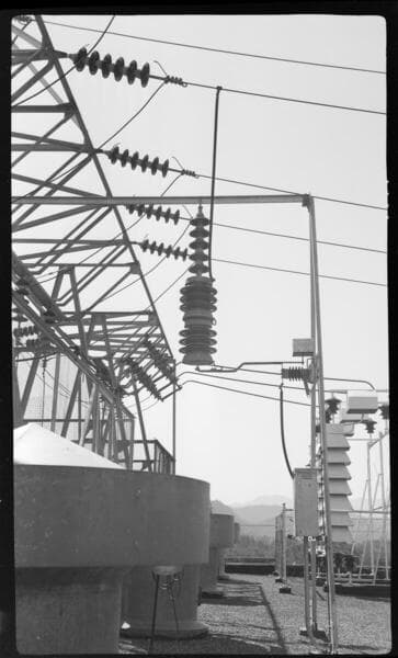 Take-away circuits on roof of Kern River No. 3 Powerhouse