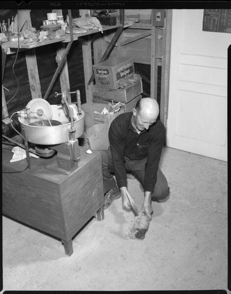 [Man cutting and polishing rocks] [with 3 variants on lapidary activities]