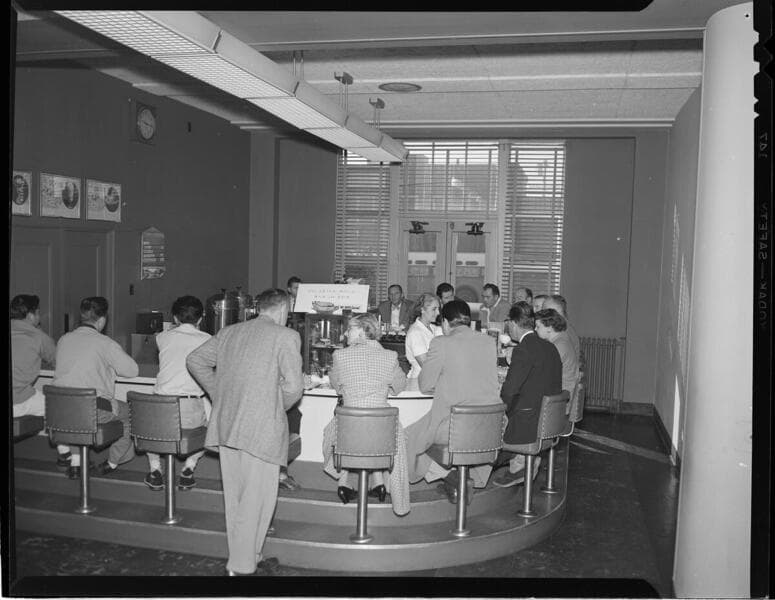Cafeteria check-out, kitchen, and food service lines [with 7 variants]