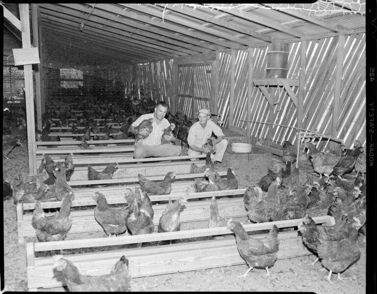 Chicken Delight take-out store with people preparing chicken dinners [with 2 variants]