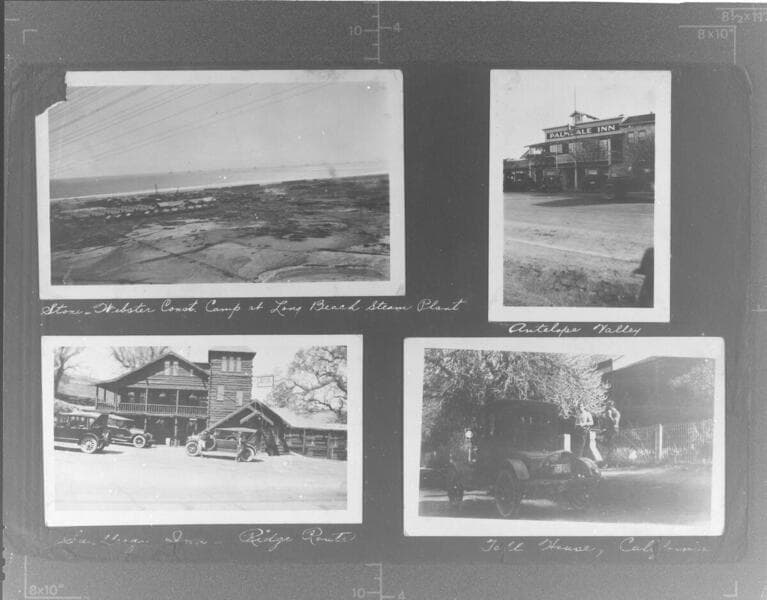 Stone & Webster construction camp, LBSP. ; Antelope Valley. Palmdale Inn. ; Sandberg's Inn. Ridge Route. ; Tollhouse, CA