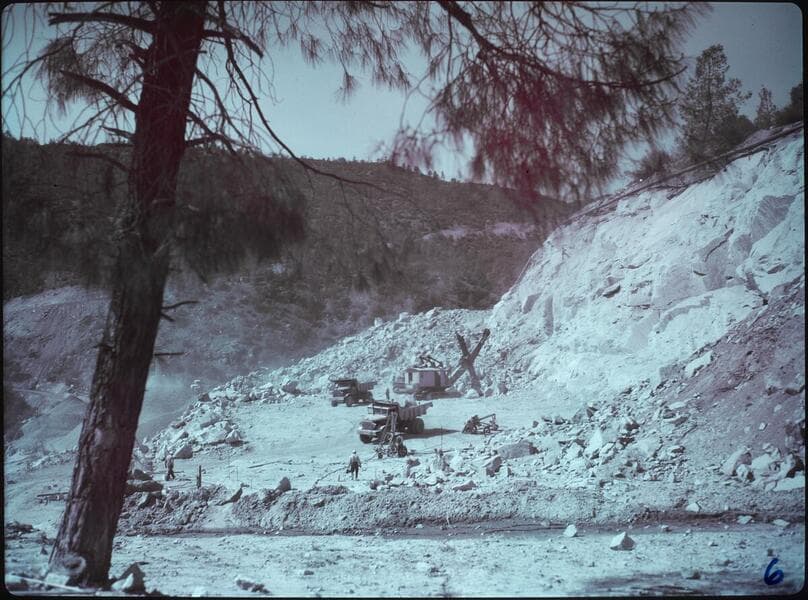Big Creek #4 project: Rock quarry with two trucks and one steam shovel