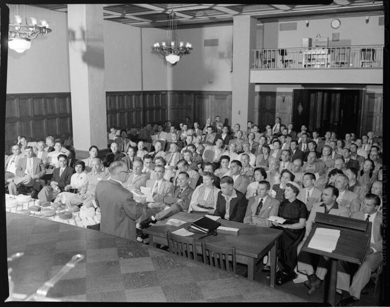 Electric cooking demonstration at Edison General Office auditorium - sponsored by Hotpoint [with 4 variants]