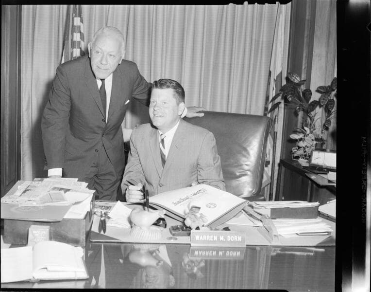 Jack Horton (l), President, and Harold Quinton (r), Chairman of the Board, SCE [color, with 5 variants]