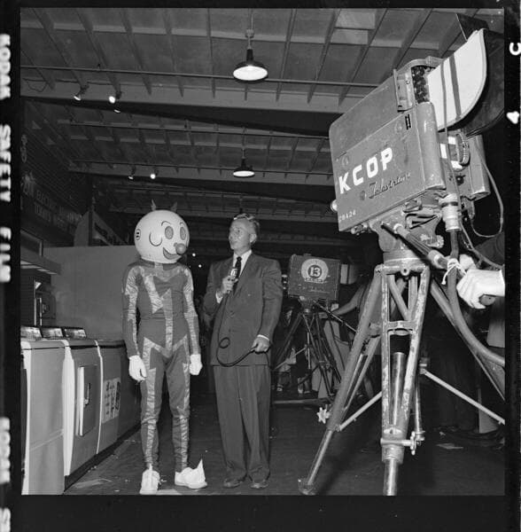 [Exhibition booth at a home show showing Alcoa all-electric kitchens and appliances with Corning counter stove tops] [with 2 variants]