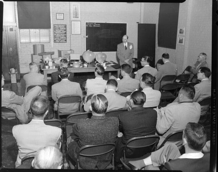 [Lineman repairing broken glass street light globes [with 11 variants]