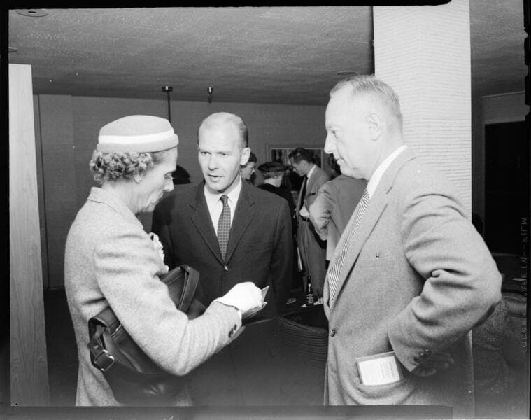 [Large group of people boarding bus at Edison General Office for a fishing trip (to Big Creek?)] [with 71 variants (35 are on 120 film)]