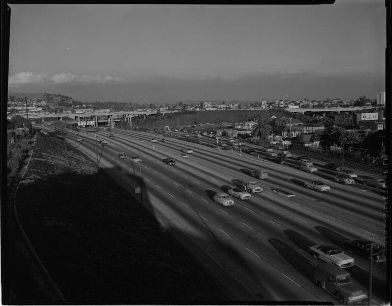 [Los Angeles freeway scenes (shot from overpasses) - Hollywood, Pasadena, San Bernardino, Santa Ana etc.] - [with 5 variants]