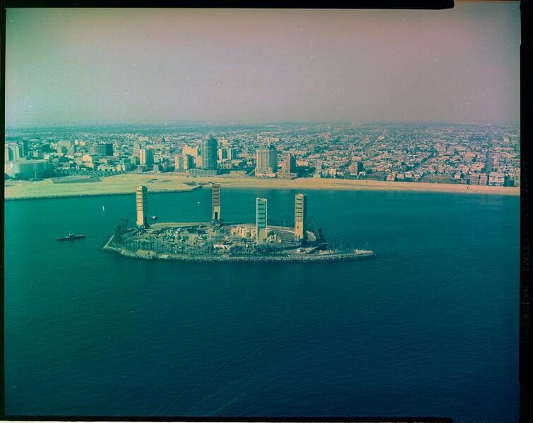 "Thums" Island in Long Beach Harbor - Offshore oil islands (color)