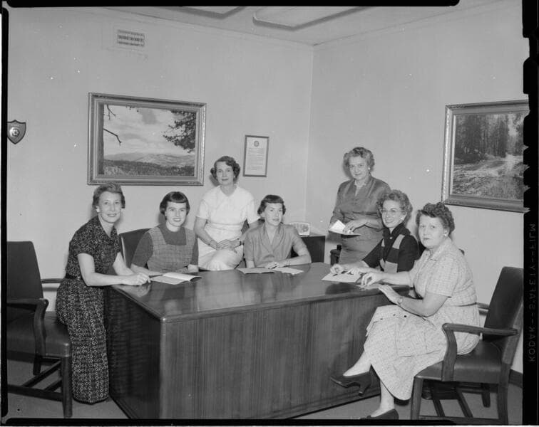 [Home Economist giving a class on electric cooking to a group of women at a Living Center teaching kitchen] [with 4 variants - one neg. is a copy the rest are originals]
