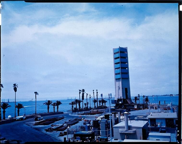 "Thums" Island in Long Beach Harbor - Offshore oil islands (color)