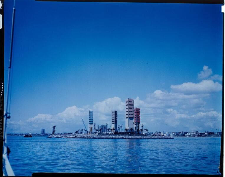 "Thums" Island in Long Beach Harbor - Offshore oil islands (color)