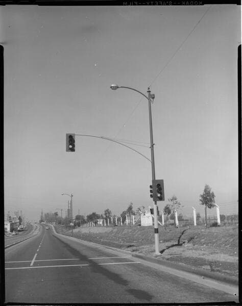 Street lighting in residential neighborhood (day and night shots) [with 4 variants] Two shots are on each 4x5 negative.