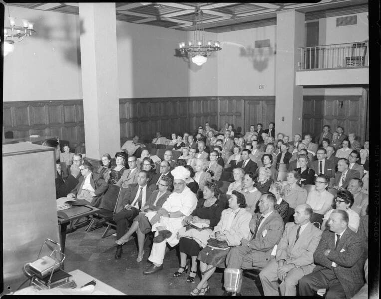 Electric cooking demonstration at Edison General Office auditorium - sponsored by Hotpoint [with 4 variants]