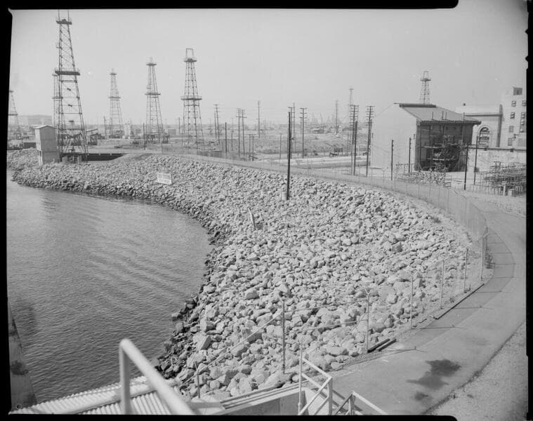 Long Beach Steam Station with oil field production in background