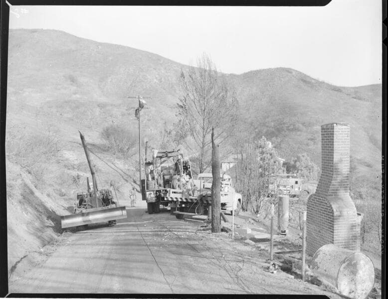 Edison crews repairing storm damage near Lake Arrowhead, March 20, 1983.