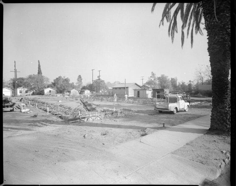 Construction of double-circuit transmission tower at substation near Santa Paula