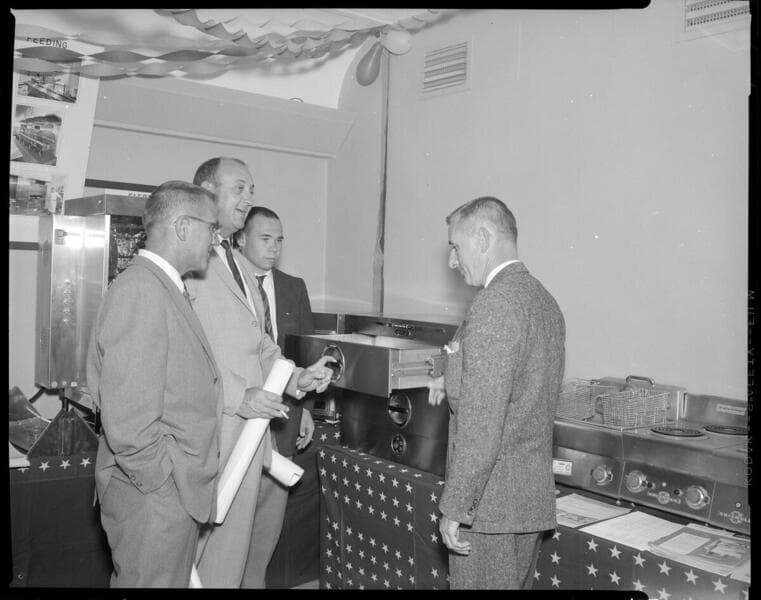 General Electric representatives demonstrating commercial electric cooking equipment at a promotional event