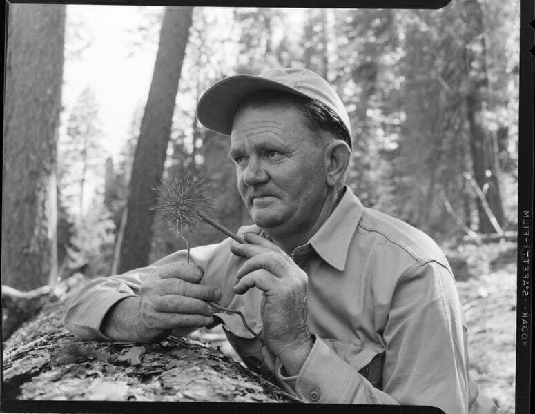Big Creek Tree Farm - Bill Wingo holding a bare root pine seedling ready to plant.