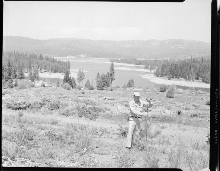 Big Creek Tree Farm - Bill Wingo measuring growth of pine seedling.