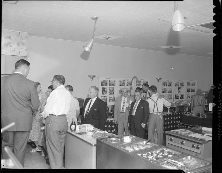 General Electric representatives demonstrating commercial electric cooking equipment at a promotional event