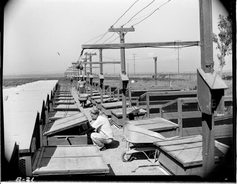 Agriculture, poultry - Pollard Poultry Ranch, Santa Ana - sunshine brooders.