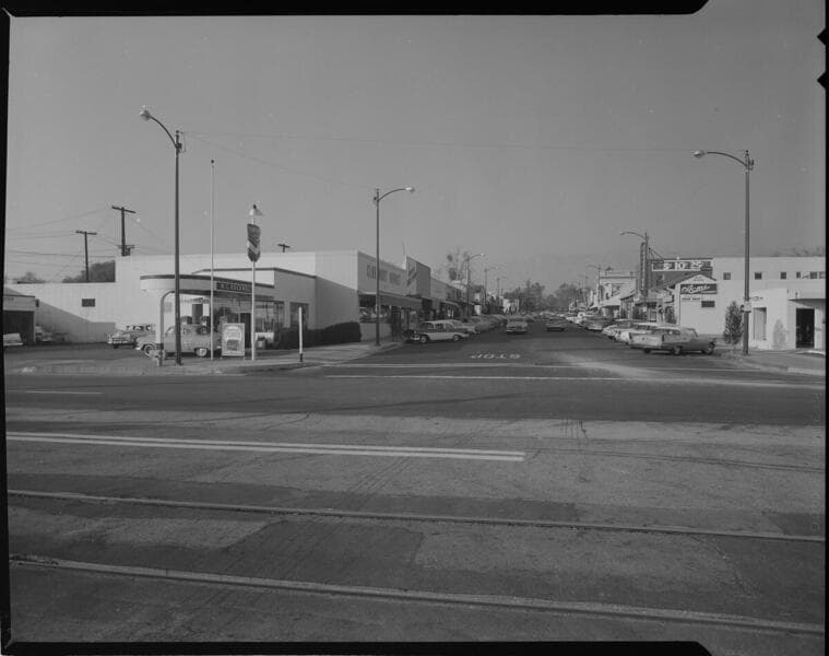 Street corner (S. California & E. Main) showing Security First National Bank