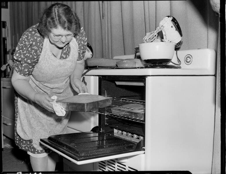 Big Cake - Venice Ballroom - Mrs. Ethyl Rodgers building the cake.