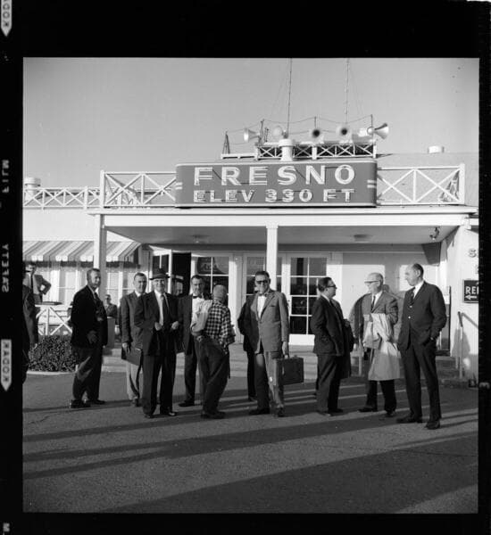 Group of men on a Big Creek Hydroelectric tour - showing the airline flight, the Big Creek guest house, dinners, poker night, Powerhouse #1, Mammoth Pool Powerhouse, fish hatchery, etc. [with 111 variants]