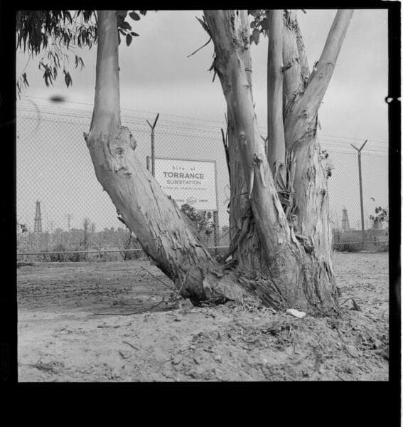 [Parking lot; Sign for Torrance Substation site; Model Homes with sign stating "Equipped With Gas for Lasting Value"] [with 6 variants]