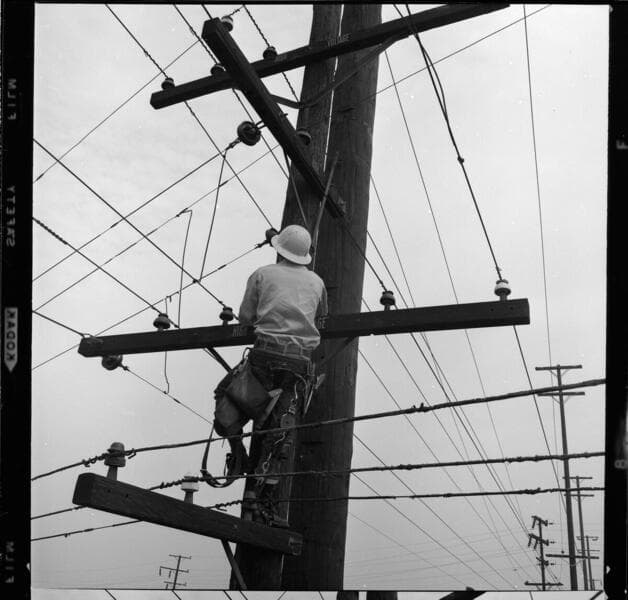 Linemen on working poles
