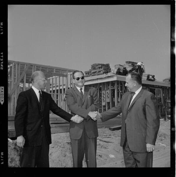 [Woodland Crest housing development - men reviewing plot maps - interior and exterior views of homes] [with 11 variants]